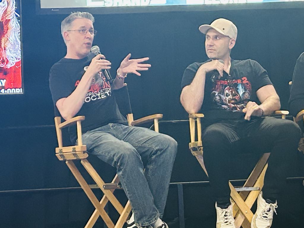 Thornton, formerly a kindergarten teacher, was asked how the fan appreciation has changed him throughout the franchise. “I’ve become a lot more talkative, ironically. I’ve always been a shy, quiet guy around people I don’t know, so just being around the fans has helped me open up more. I’m more comfortable in my own skin – and other people’s skin, if you’ve seen Terrifier 1. It’s been ‘Art therapy’!”